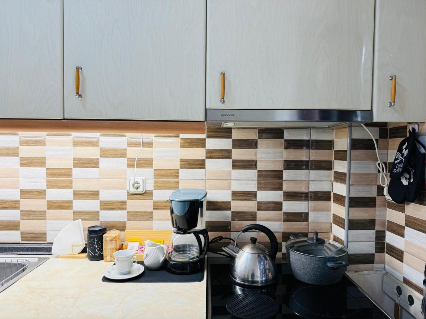 One-Bedroom Apartment. This air-conditioned apartment consists of 1 living room, 1 separate bedroom and 1 bathroom with a shower. Guests can make meals in the kitchen that is equipped with a stovetop, a refrigerator, a dishwasher and kitchenware. The apartment provides a washing machine, soundproof walls, a tea and coffee maker, a flat-screen TV with streaming services, as well as a quiet street view. The unit offers 3 beds.