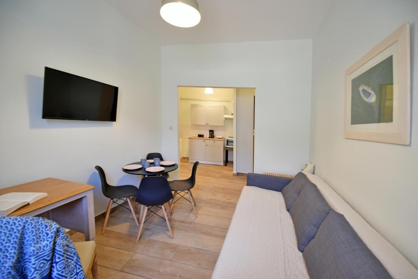 The air-conditioned apartment consists of 1 bedroom, a living room, a fully equipped kitchenette with an oven and a coffee machine, and 1 bathroom with a shower and a hair dryer. A private entrance leads gueststhe apartment,they can enjoy some wine or champagne and chocolates or cookies. The apartment offers bed linen, towels and housekeeping service.