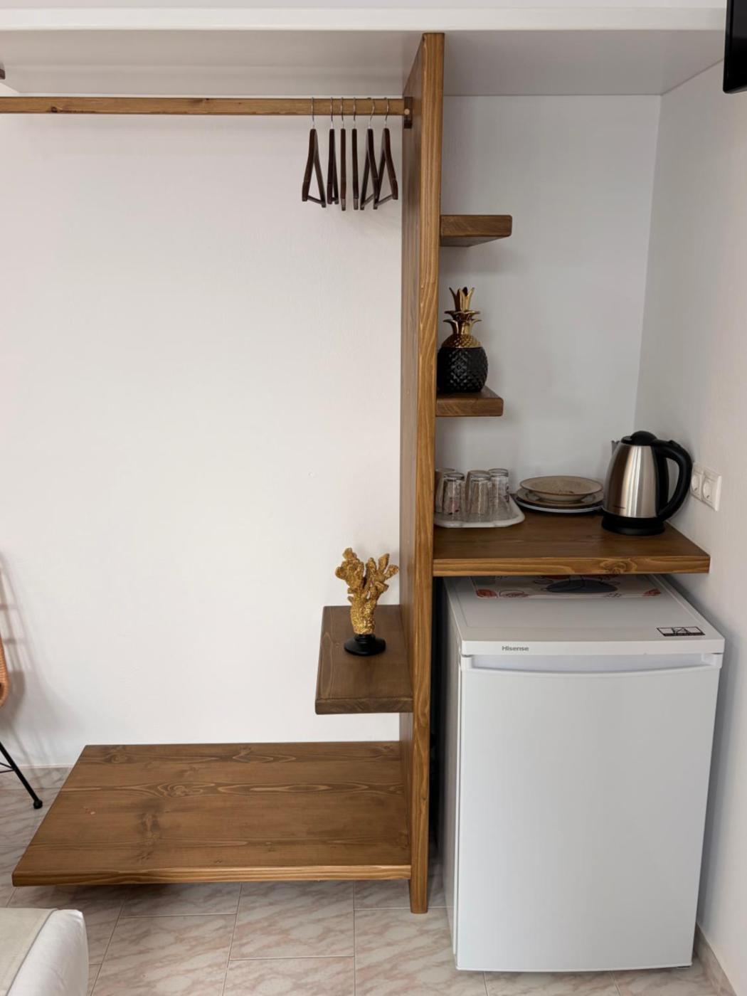 Deluxe Double Room with Shower. The double rooms kitchenette, which features a refrigerator, is available for cooking and storing food. The double room provides air conditioning, a wardrobe, as well as a private bathroom featuring a shower and a bidet. The unit offers 1 bed. ;