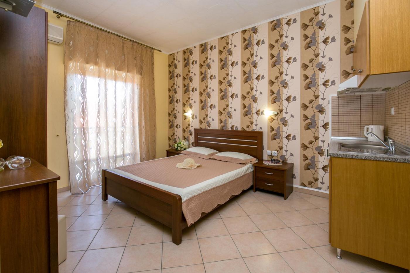 Deluxe Double Studio. Guests can make meals in the kitchenette that has a stovetop, a refrigerator, kitchenware and an electric kettle. The studio features a dining area, a wardrobe, a terrace with garden views as well as a private bathroom boasting a shower. The unit has 1 bed. ;